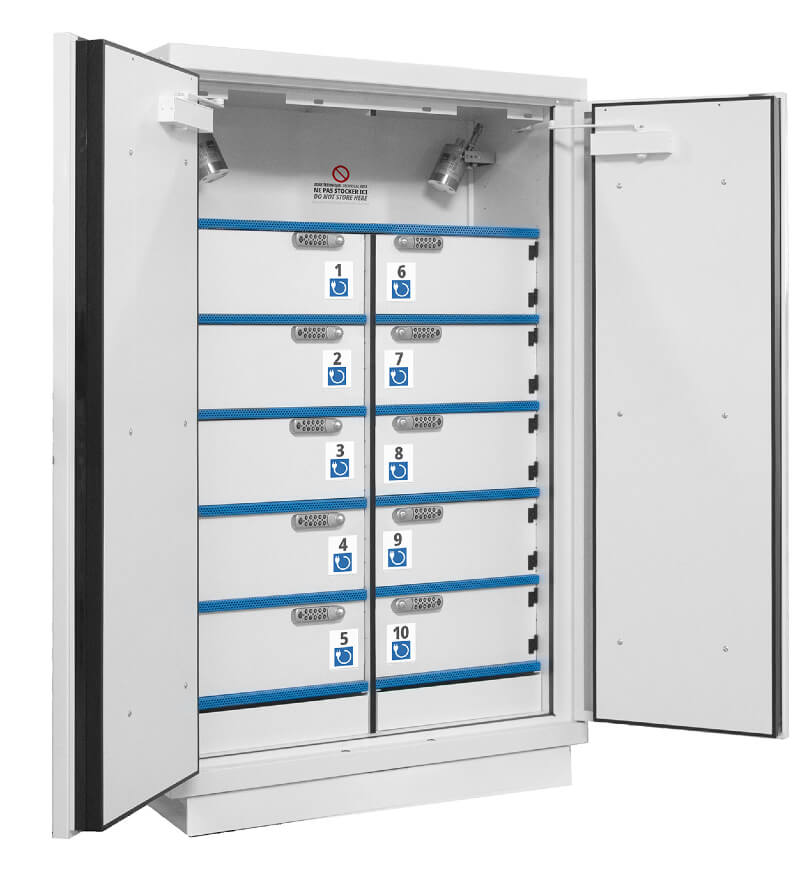 A l’heure de la transition énergétique GRAVITTAX enrichit sa gamme de solutions de stockage en proposant des armoires à compartiments pour l’entreposage et la recharge des Batteries Lithium de vos collaborateurs